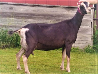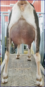 Spellbound is a very correct doe, scoring E-Excellent in back and rump and in in dairy strength. In 2019 we were pleased with her first freshener LA score of 88 (the best score allowed for a first freshener is 89). She freshened with a balanced and well-attached udder and is easy to milk.